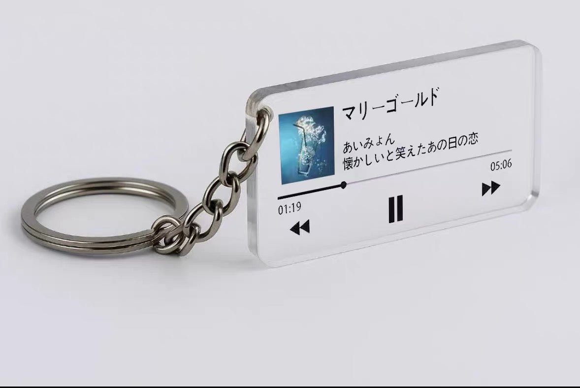 お気に入りの音楽をイメージした、ユニークなデザインのアクリルキーリングです。